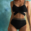 Bring the drama in our new wrap around two piece bikini set with braided shoulder straps and waistband.